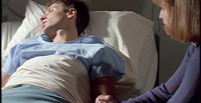 Scully's abduction and return, near-death, clarified Mulder's feelings towards her - now Scully finds herself in the same situation when Mulder is affected by the retrovirus. If she can save him, will things then go back to normal?
